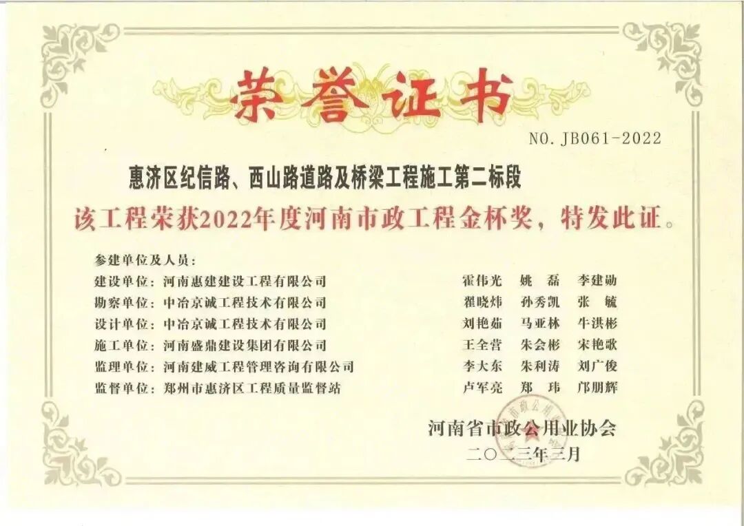 2022年度河南市政工程金杯奖